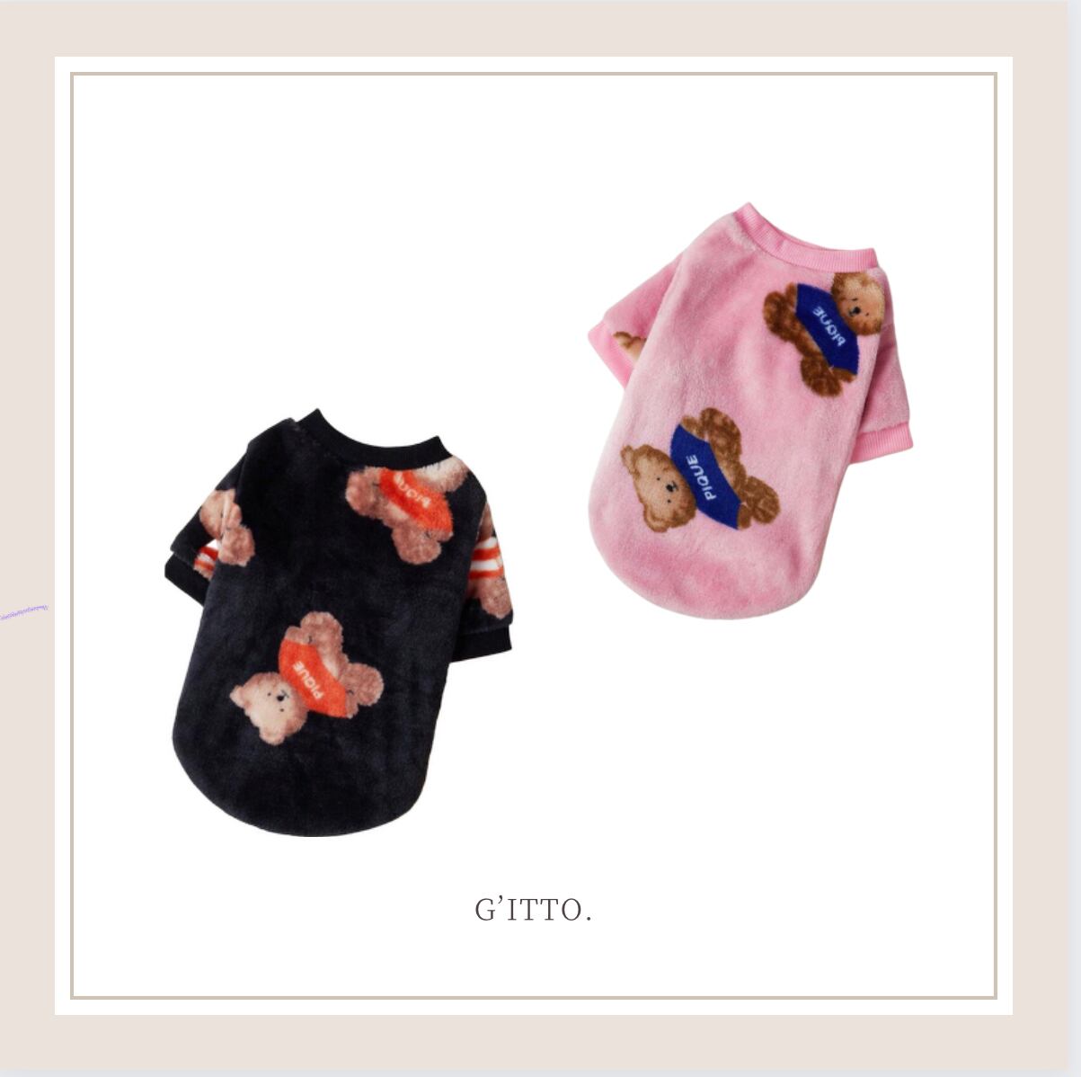 かわいいくまのデザインが特徴の、大切なわんちゃんのための部屋着です。柔らかな素材で出来ているので、パートナーのお肌に優しくフィットします。寒い季節や冷房の効いた部屋で、暖かく快適に過ごせるアイテムです。もこもこふわふわで、肌触りも良く動きやすさも抜群です。お家で過ごす時間がさらに楽しくなる、かわいい一枚を提供いたします。