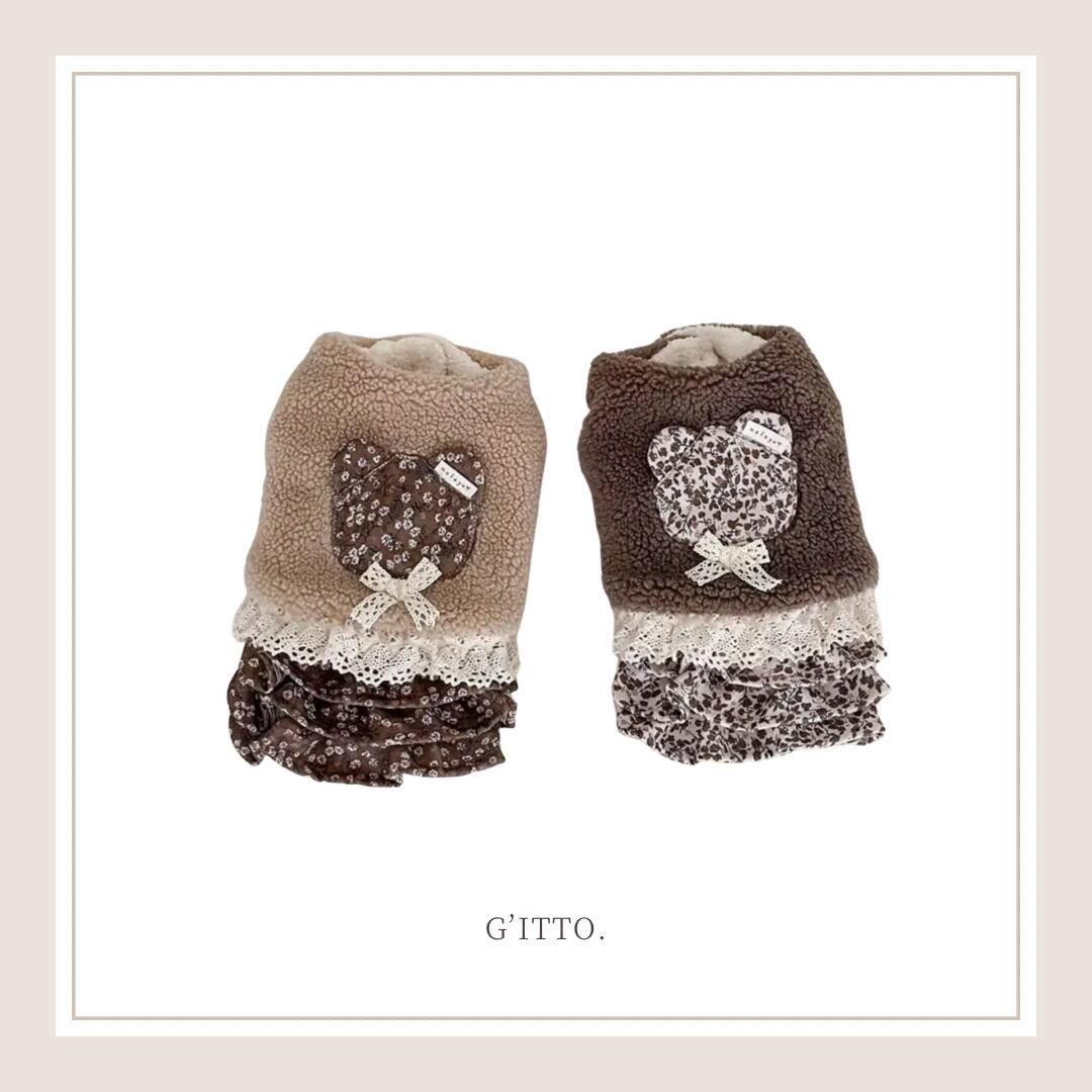 ベストは他のアイテムとも合わせやすく、可愛らしさがアップします。モコモコしたボア生地です。