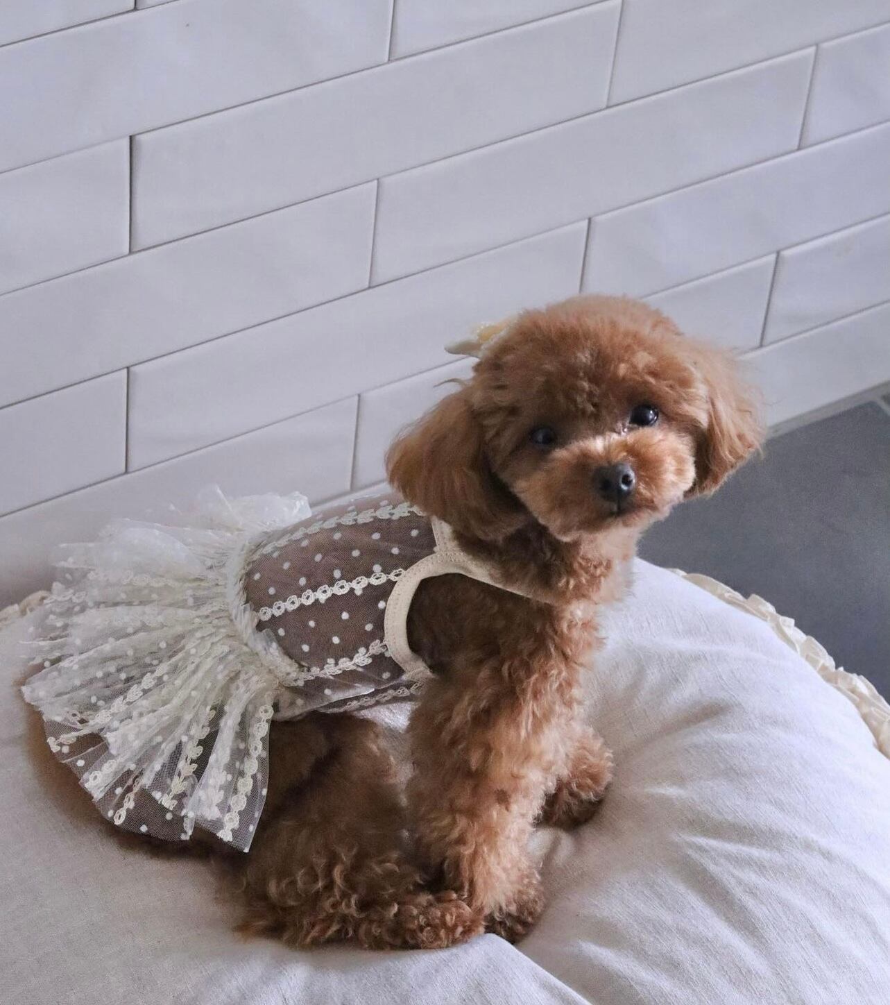 オフホワイトのオールレースチュチュ