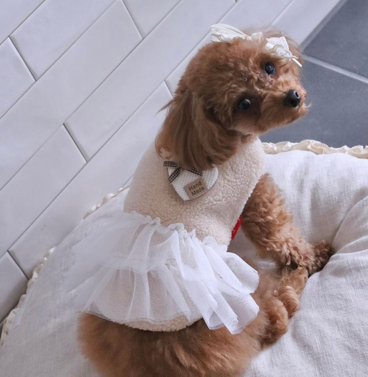 チュールレースが付いたしっかりとした厚みがあるベストです