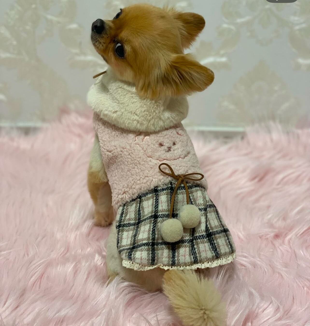 スカート裏地がボア、ベストがボア、首元にはケープ