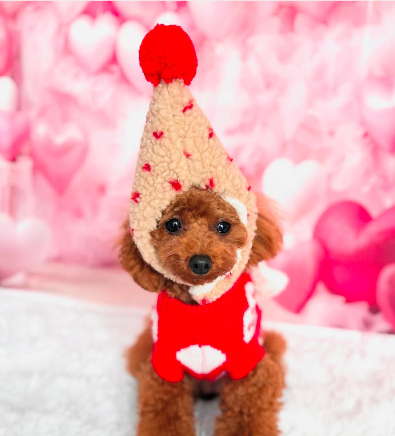 小さなハート柄、三角帽子のようなとんがりした形が可愛く、暖かい帽子